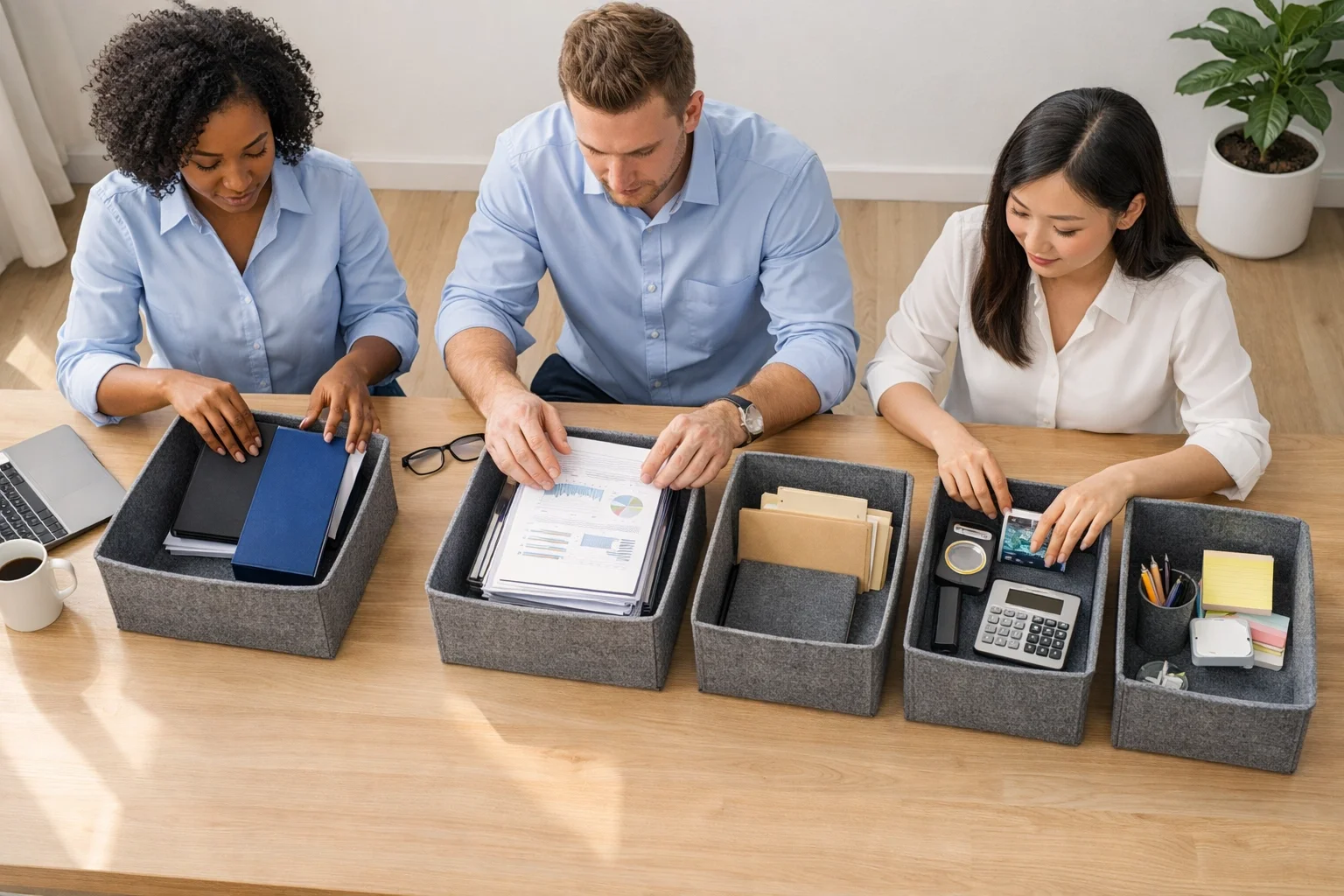 When you pick up a piece of mail, a receipt, or a printed report, you are not allowed to put it back down on the desk. You must move it directly into one of the five boxes. This prevents the "shuffling" habit that creates clutter.